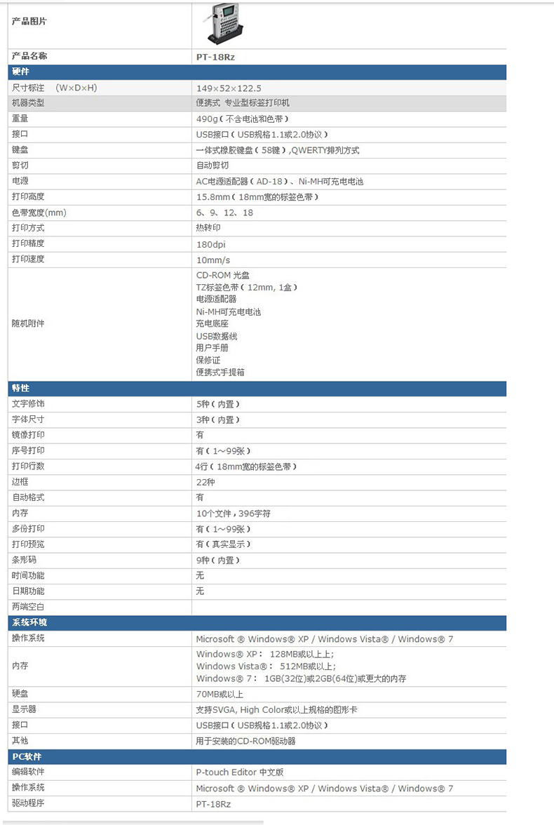 brother兄弟PT-18Rz标签机